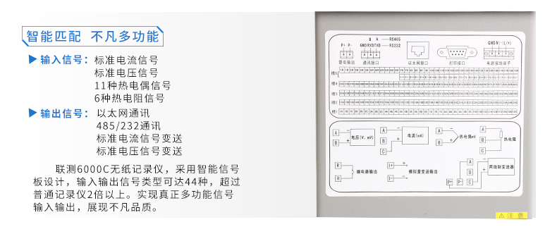 SIN-R6000C系列彩色無紙記錄儀48路萬能輸入(可組態選擇輸入:標準電壓、標準電流、熱電偶、熱電阻、頻率、毫伏等)。可帶18路報警輸出,12個變送輸出,RS232/485通訊接口,以太網接口,微型打印機接口和USB接口,SD卡插座;可提供傳感器配電;具有強大的顯示功能,實時曲線顯示,歷史曲線追憶,棒圖顯示,報警列表顯示。